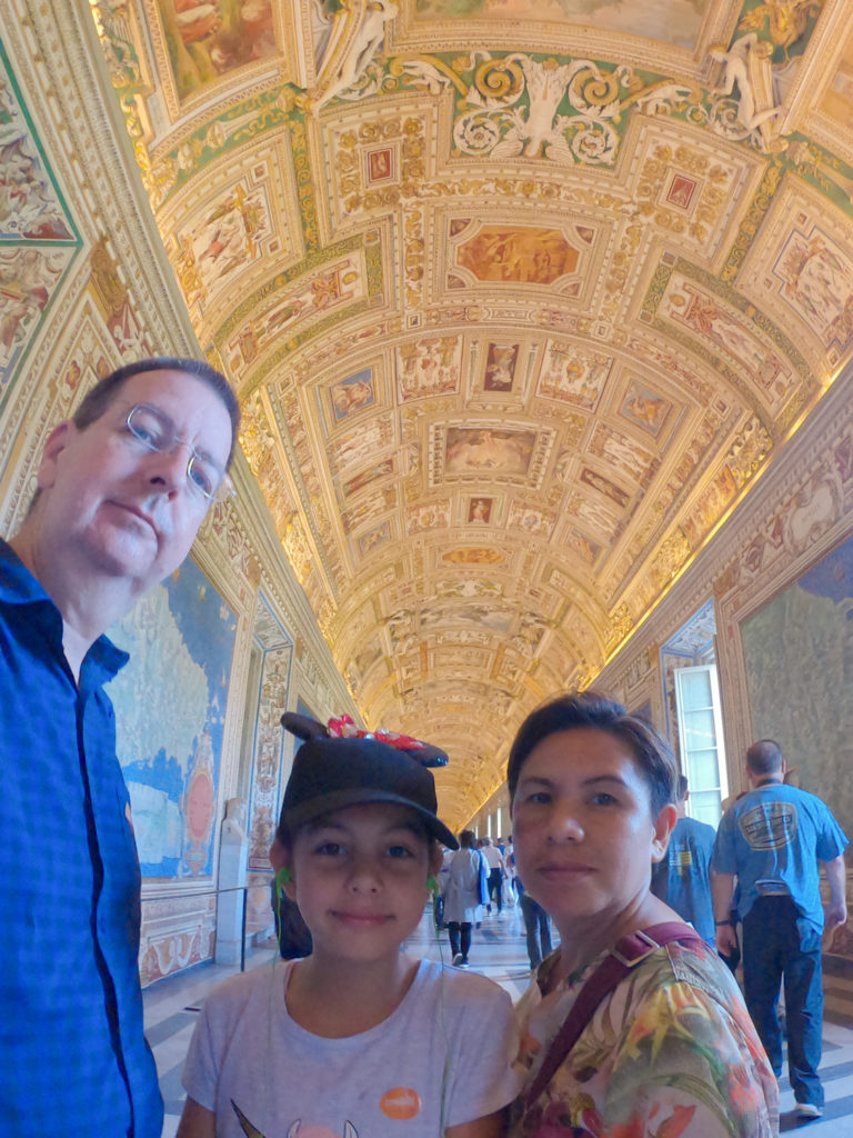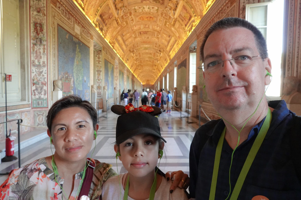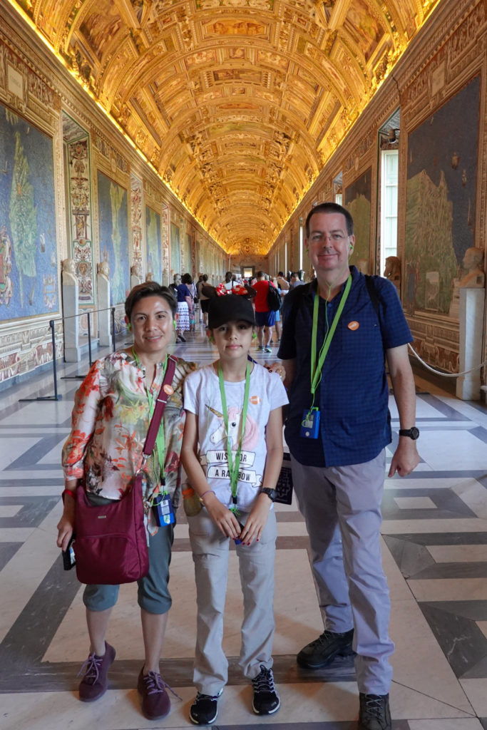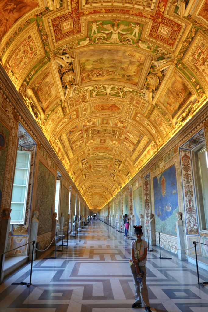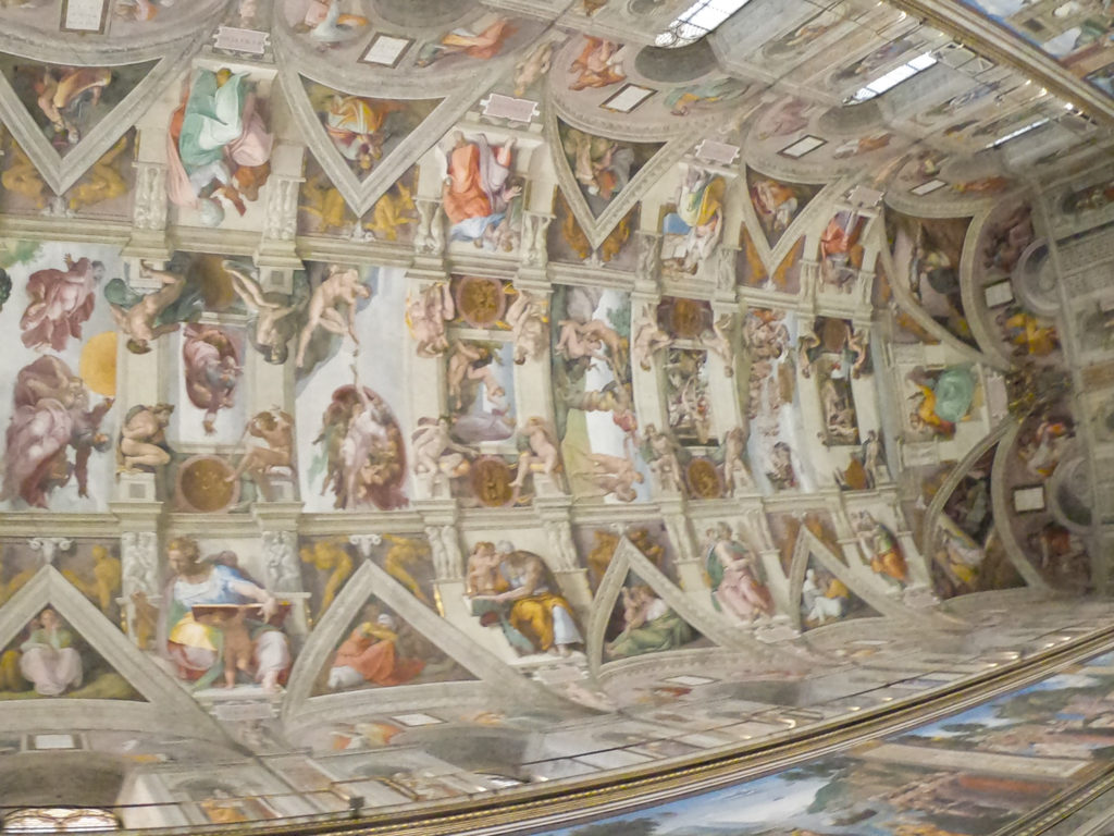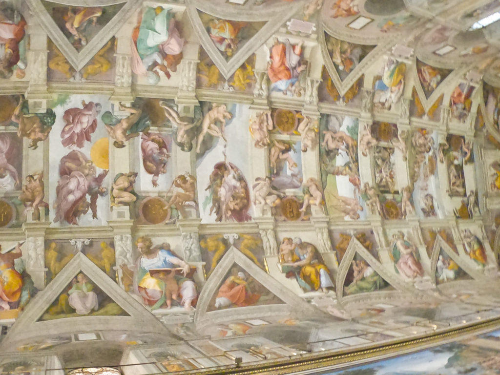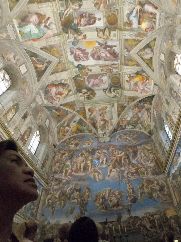 Guides aren’t allowed to “guide” in the Sistine Chapel, and ours disappeared completely. We asked a guide with the same company what we should do with our headsets and he said “I’m not allowed to talk to you” and walked away from us like we smelled bad (which maybe was true). Eventually we managed to dump our headsets with another guide, and so after taking a couple of hundred photos we went back into the museum.