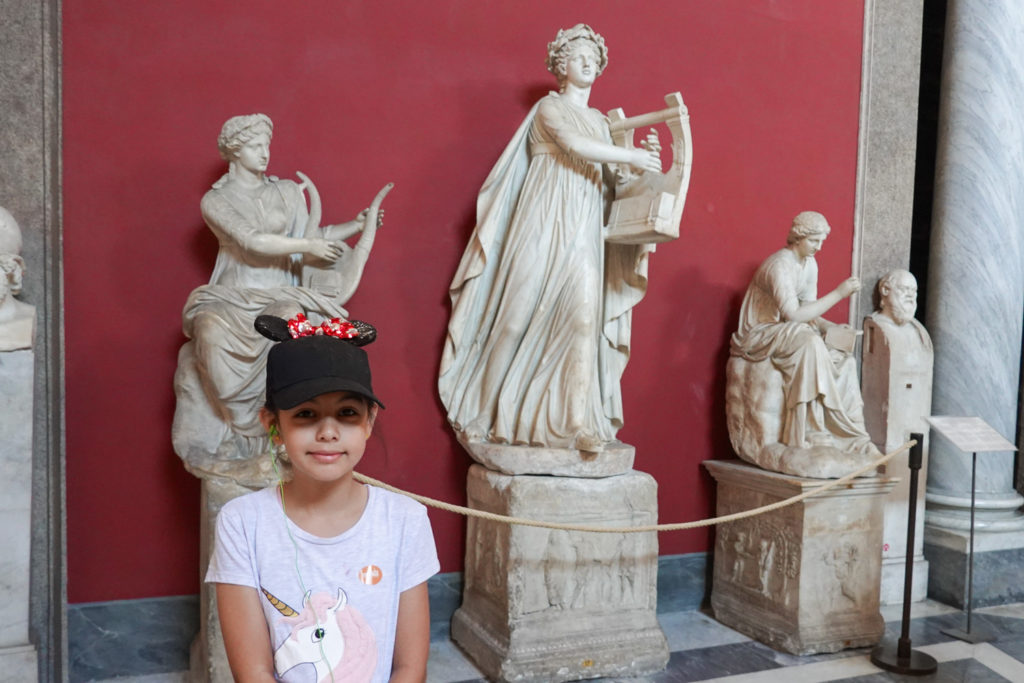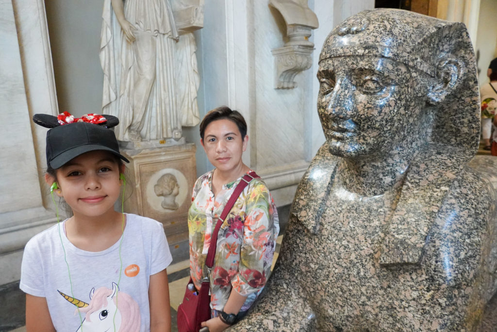 With no guide we used Rick Steves audioguide on our phones, which was more than adequate. Jess listened through the earbuds we’d kept from the actual tour guide, and told us which way to go and the significance of selected pieces, while Mina and I snapped away.