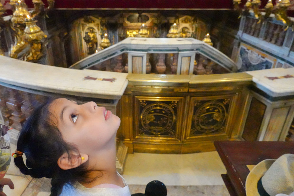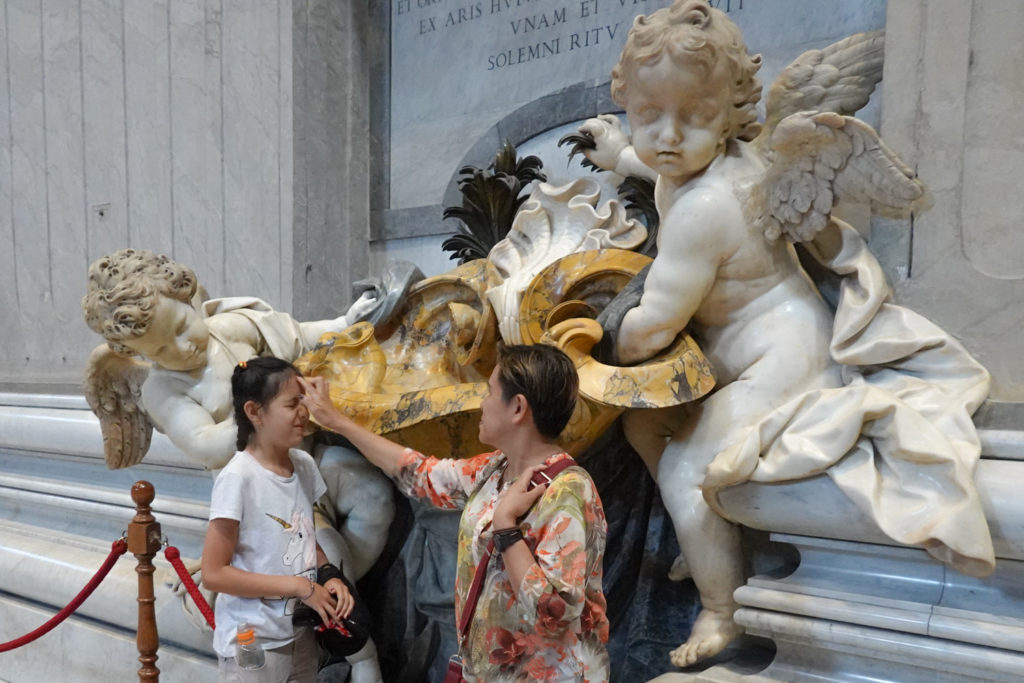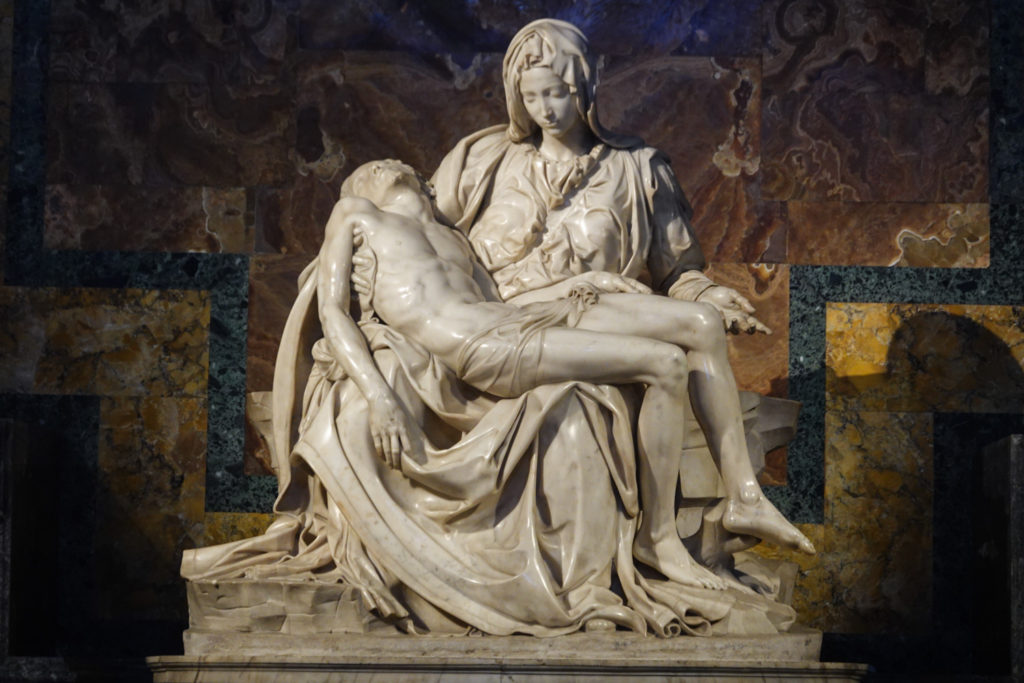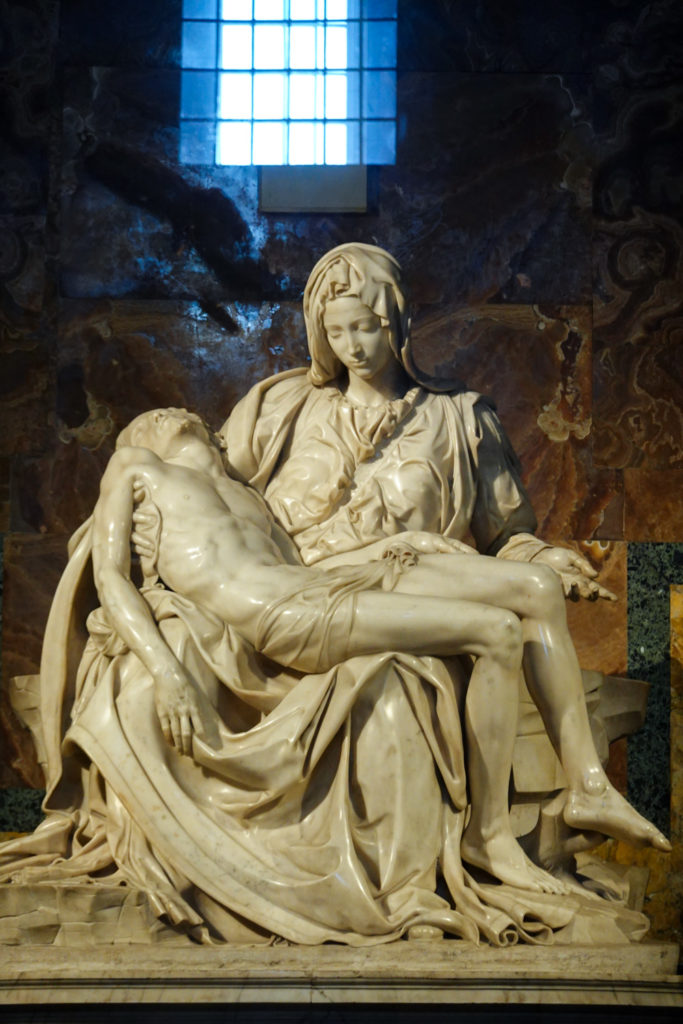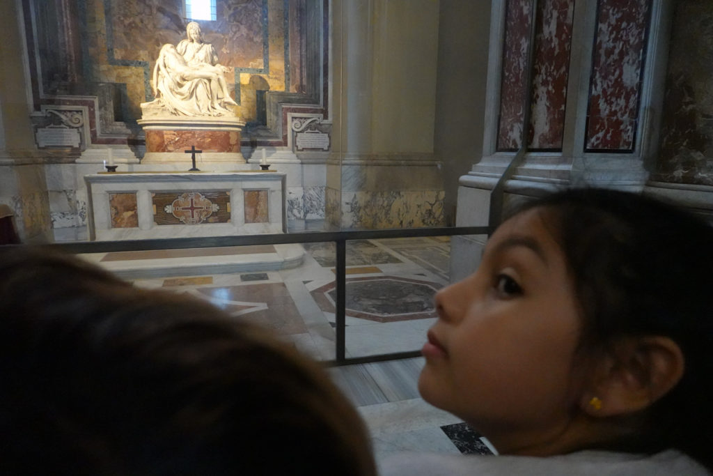 Michaelangelo’s Pietre is impossible to appreciate due to the crowd – it’s press is more like that at the front of a rock concert. We forced our way to the front briefly or Mina and Jess would have had no chance at all to see it.